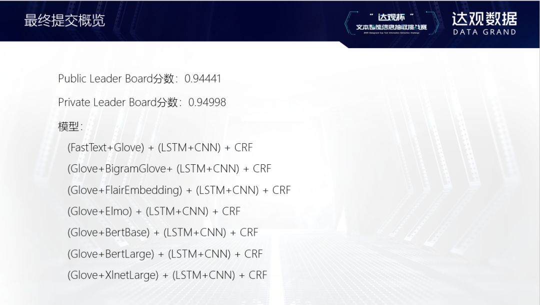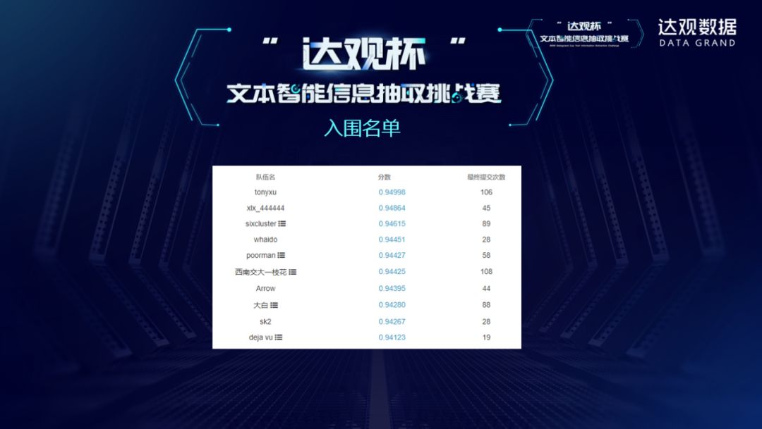 最后的结果竞争非常激烈,前几名要依靠万分位排序,不像过去的很多比赛第一名和第二名会有显著差距。这说明目前的技术出现了同质化,也说明了技术的确进步了,整个技术平台提升了,大家也都变强了。
