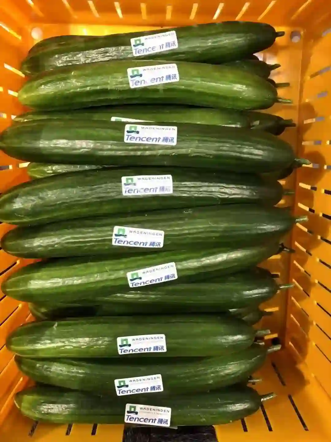 这可不是一筐普通的黄瓜。它们是由腾讯人工智能实验室AI Lab团队的成员协同国内外农业专家和学生,使用人工智能AI在荷兰一间温室里种植出来的黄瓜。