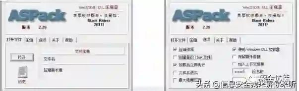常见到的压缩壳有"UPX"、"北斗程序压缩"、"ASPack"等,加密壳有"PE-Armor"、"ASProtect"等等。
