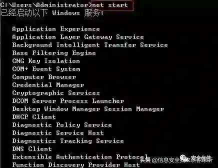 服务是很多木马用来保持自己在系统中永远能处于运行状态的方法之一。我们可以通过点击"开始" "运行" "cmd",然后输入"net start"来查看系统中究竟有什么服务在开启,如果发现了不是自己开放的服务,我们可以进入"服务"管理工具中的"服务",找到相应的服务,停止并禁用它。