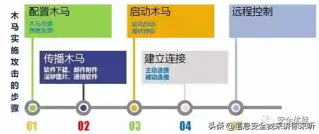 木马主要是依靠邮件附件、软件下载、淫秽图片、通信软件等途径进行传播,然后,木马通过一定的提示诱使目标主机运行木马的服务端程序,实现木马的种植。