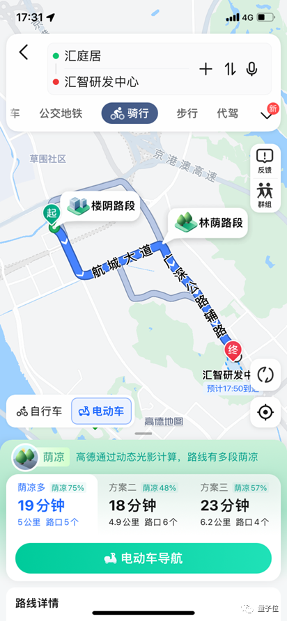 例如前不久在社交媒体上引起热议的实用创意产品“防晒导航”,在当时屡创新高的高温天气中非常引人注目,背后原理是一套称之为“动态光影跟踪”的技术体系,通过为用户智能推荐有更多道路周边遮挡物阴影覆盖的路线,以达到清凉防晒的目的。