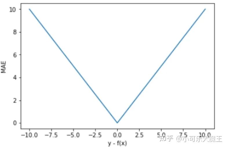 以 y-f(x) 为横坐标,MAE 为纵坐标,绘制其损失函数的图形: