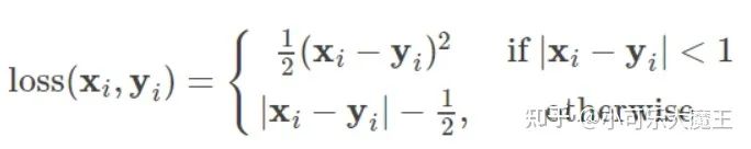 该函数实际上就是一个分段函数,在[-1,1]光滑,这样解决了MAE的不光滑问题,在[-∞,1)(1,+∞])区间解决了MSE可能导致的离群点梯度爆炸的问题,即:
