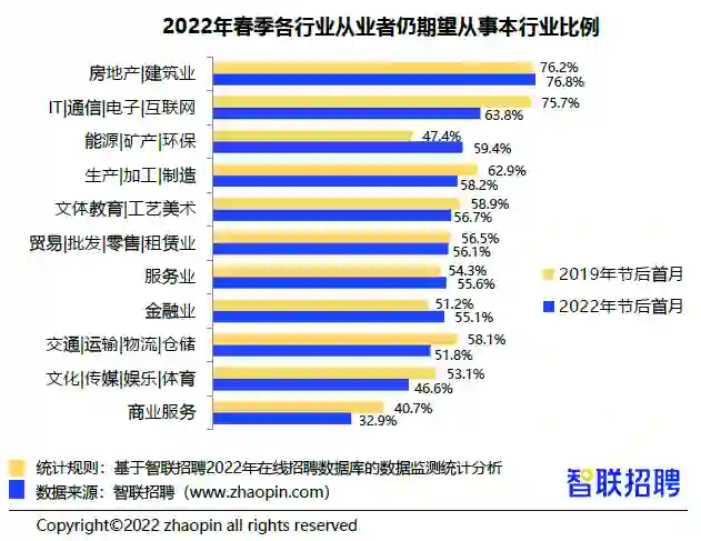 2022年春节后首月不改行的是63.8%,而2019春节后首月不改行的是75.7%。