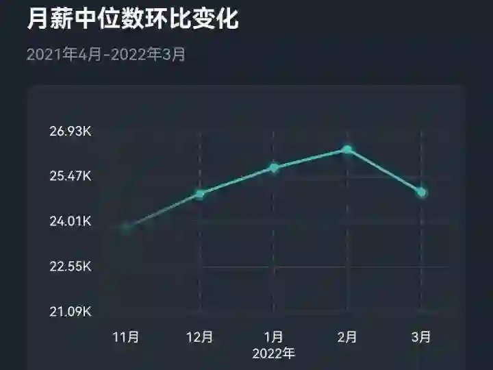 而且「看准」上的算法工程师春季月薪中位数环比变化,更有意思。在多年都是连续上涨以后,2022年3月份突然下探了一大截。