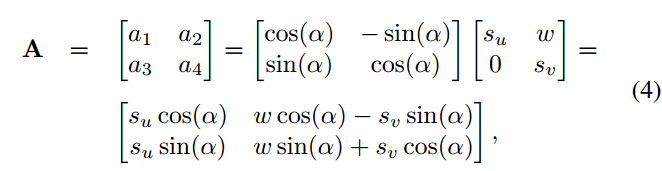 其中α,s_u,s_v和w分别表示旋转角,沿着轴u和轴v的缩放比例和剪切参数。