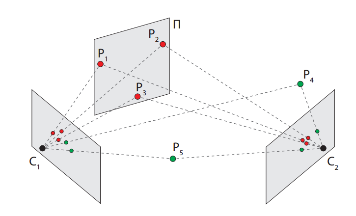 图1 提出最小解求解方法估计在两个视图C1和C2之间的基本矩阵