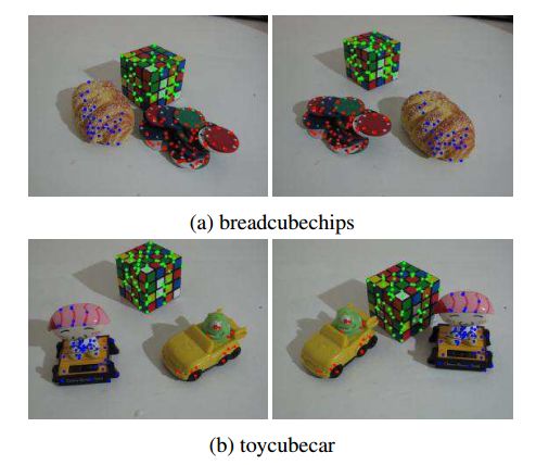 在AdelaideRMF运动数据集上进行了评估(参见图6),包括18个图像对和地面实况——分配给它们运动的聚类或异常类的对应关系。