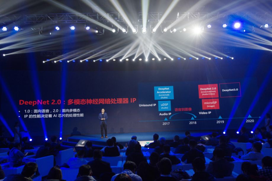 云知声第二代神经网络处理器 IP 包含视觉和语音等多模态下的处理能力,其 feature 包括:支持多 NPU 组网,支持 Int16/8/4/1 数据类型,支持卷积、池化、激活等深度神经网络专用运算指令;支持系数权重压缩,算力可配置(64G—4Tops)。云知声联合创始人、芯片技术负责人李霄寒表示,2018 年底已经完成 DeepNet2.0 在 FPGA 上的验证工作。