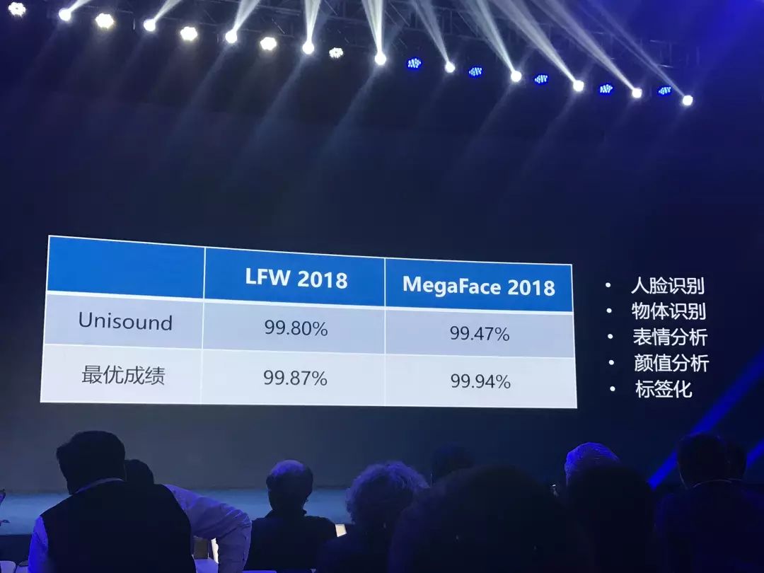 2018 年 11 月,在国际权威的人脸识别标准评测数据库 LFW 和 MegaFace 评测中,云知声团队研发的人脸识别 UFaceID 算法系统性能分别达到 99.80% 和 98.47%。