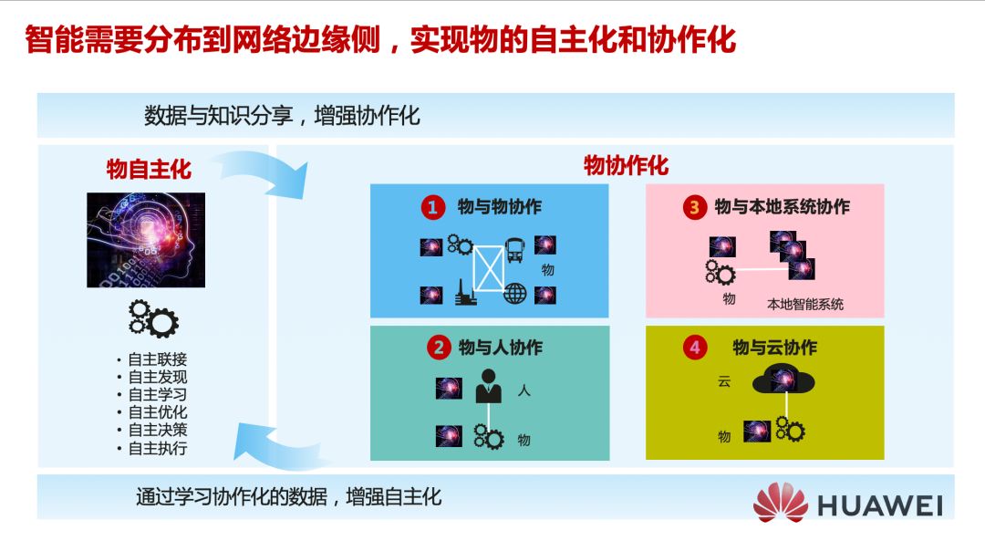 史扬表示,需要建立一个智能的分布式架构,实现物的自主化和物的协作化。物的协作化包括物与物协作、物与本地协作、物与云协作。智能的分布式架构面临业务实时,成本有效,智能协同等诸多挑战。