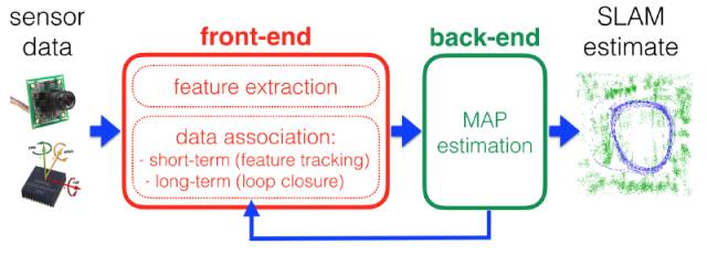 本文主要介绍目前非常热门的VSLAM的技术框架,未来会有非常好的前景。VSLAM的技术框架如下,主要包括传感器数据预处理、前端、后端、回环检测、建图。