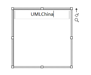 【步骤2】点击工具箱中的,再点击图的顶部中间,在文本框中输入UMLChina,拖动边界框的边调整到合适的大小。