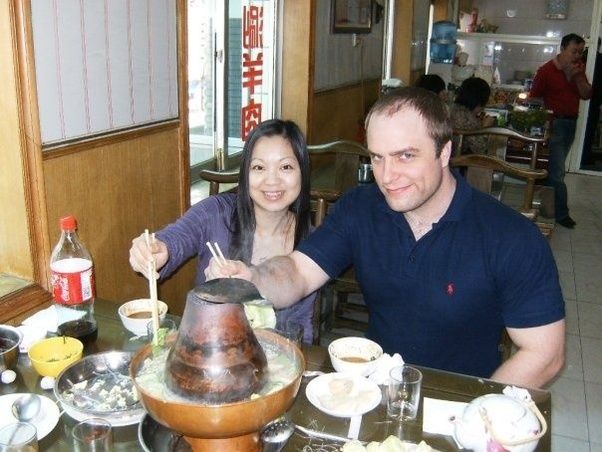 (Quincy Larson和他的妻子Jade在吃火锅)