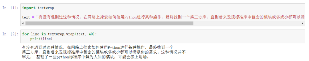 这个模块具可轻松包装和缩进纯文本的功能, 当你的奇怪需求是将所有打印内容以80个字符包装到终端时,它很有用。例如,