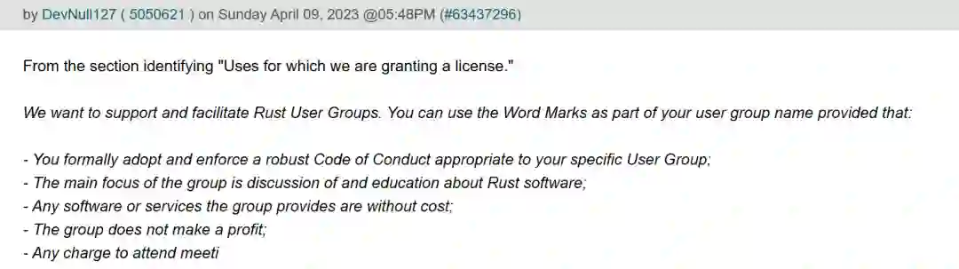 https://devclass.com/2023/04/11/dont-call-it-rust-community-complains-about-draft-trademark-policy-restricting-use-of-word-marks/