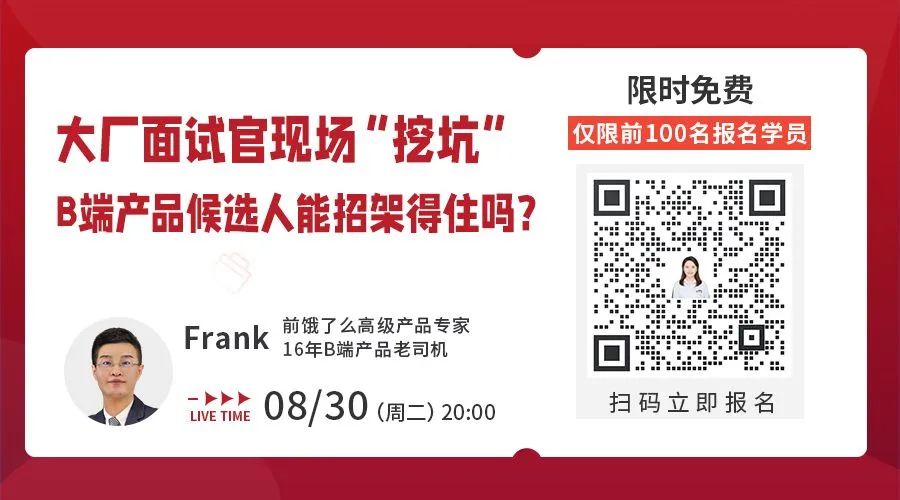现特邀前饿了么高级产品专家@Frank老师在线连麦1v1直播模拟面试,现场剖析PM面试都是怎么聊阅历、聊思路、聊判断的~