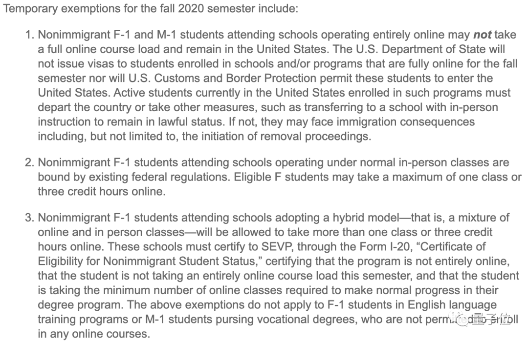 美国国务院不会向在秋季学期完全在线的学校和/或课程注册的学生发放签证,美国海关和边境保护局也不会允许这些学生进入美国。