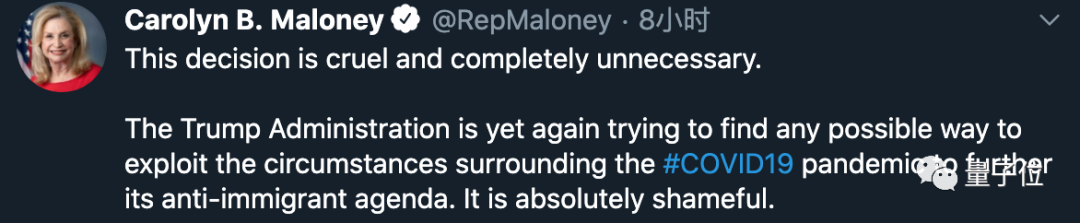 就连民主党众议员 Carolyn Maloney 也炮轰特朗普: