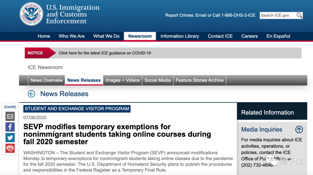 美国移民和海关执法局发布的公告如下,大家感受下: