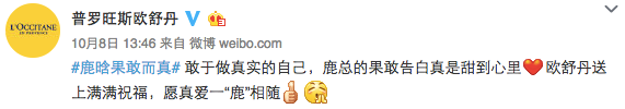 对于鹿晗宣布恋爱,品牌商们也乐见其成,一个接一个地为鹿晗CP发去祝福。