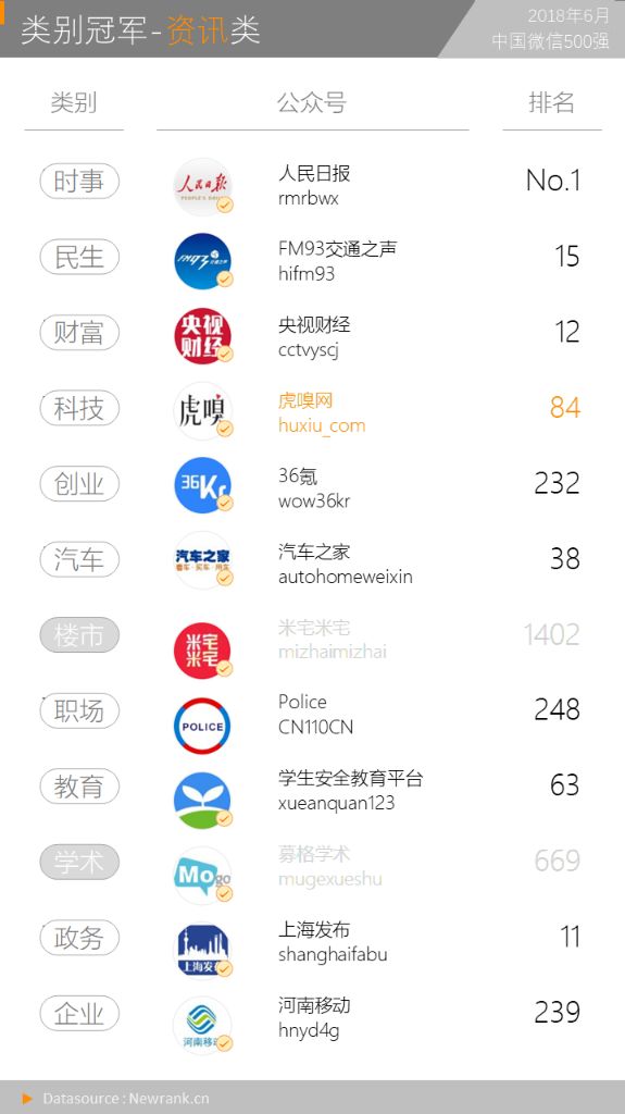 请认准由新榜(newrank.cn)认证出品的中国微信500强月榜、年榜。