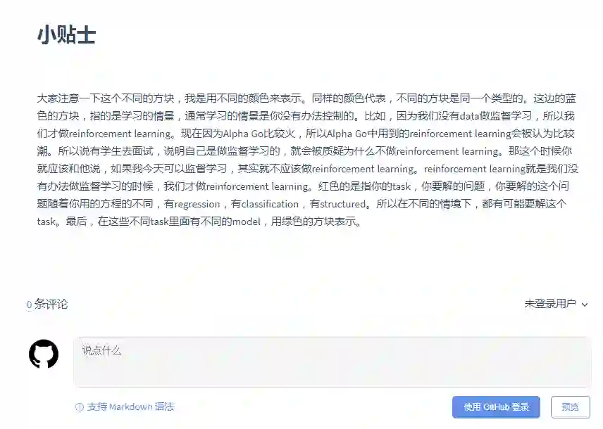 目录中每一节最后都设置了交流互动区供大家总结学习内容、提出自己的疑问和广大学习者互动,使用GitHub登录就好啦,是不是交流起来就方便了许多。