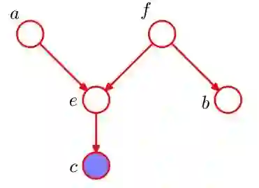 给定下面一个DAG,判断图中a和b是否在c条件下独立?a和b是否在f条件下独立?