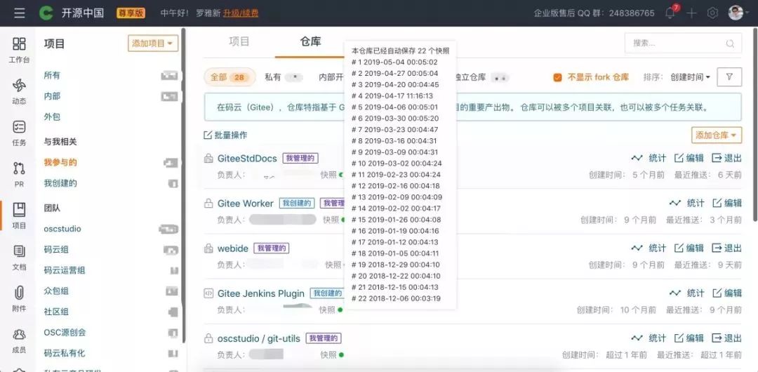 第二,就算灭霸改了代码也能在云端快速恢复。码云企业版的企业仓库镜像完整备份,不仅推送的代码可以回滚,哪怕删代码库也能镜像恢复。