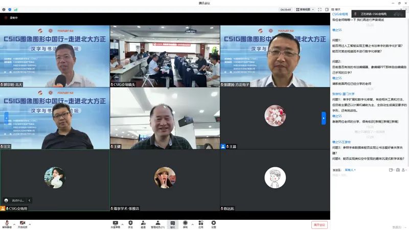 在主题分享过程中,线下、线上参会人员就自己感兴趣的话题向分享嘉宾们进行了提问,各位专家分别进行了专业、详细的解答,帮助大家加深了对“汉字与书法技术”前沿方向的了解。现场交流气氛热烈,除了问答互动,还有多名参会者针对“汉字与书法”主题分享了自己的观点和建议。