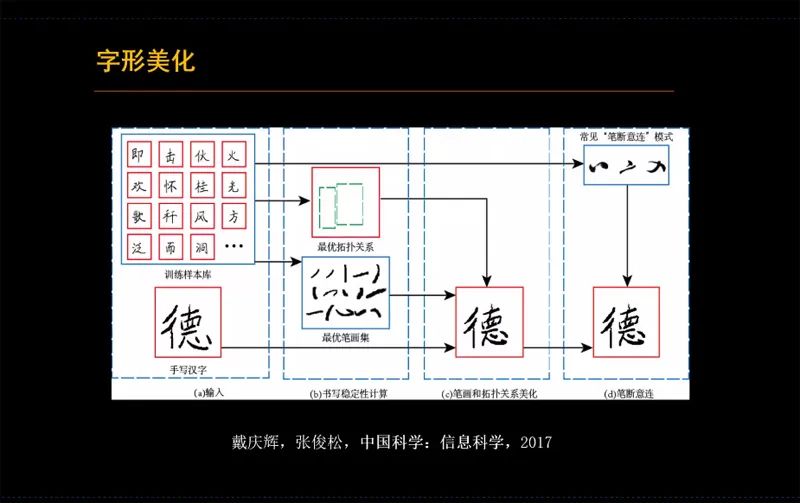 北京大学王选计算机研究所副教授、字体中心副主任、CSIG文档图像分析与识别专委会和三维视觉专委会常务委员连宙辉,以《面向文字的图形图像生成技术新进展》为主题,向大家介绍了在面向文字的图形图像生成方面取得的一些新进展,包括:属性可控的定制字体生成[TOG’20];基于双模态学习的紧凑高质矢量字体自动生成[TOG’21];基于元学习的任意风格汉字书写轨迹合成[EG’21];内容感知的文字标志(Text Logo)图像生成[CVPR’22]等。