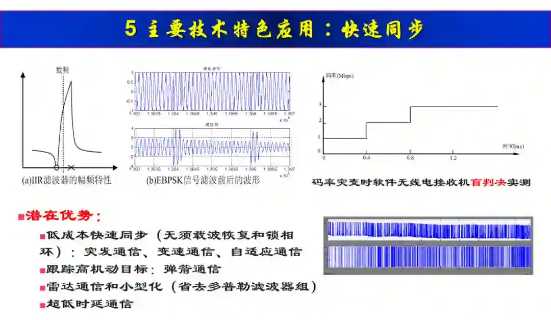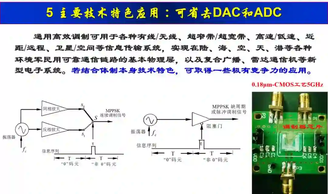 吴教授团队提出了从超窄带到宽带甚至脉冲超宽带、从通信到脉冲编码雷达的通用调制波形,设计了独特的数字/模拟冲击滤波器,覆盖或绕开了美国专利,只用单天线即实现了综合传输效率的大幅提升,在从超长波到微波各频段的通信及抗干扰领域有性能优势或应用特色。