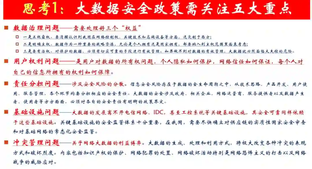 在围绕大数据的众多问题中,安全风险一直是一个焦点。我们要有以大国的责任和态度与国际社会共同治理日益技术化、数据化的世界。主动平衡责权利,打好“中国牌”以我们在市场、人口、发展阶段等方面的比较优势,求取我们最大的发展和安全利益。