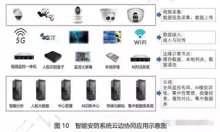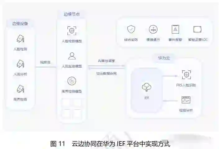 云端执行AI 的训练任务,边缘计算节点执行 AI 的推论,二者协同可实现本地决策、实时响应,可实现表情识别、行为检测、轨迹跟踪、热点管理、体态属性识别等多种本地 AI 典型应用。