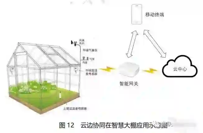 以智慧大棚为例:针对条件较好的大棚,安装有电动卷帘,排风机,电动灌溉系统等机电设备,通过云端可实现远程控制功能。农户可通过手机或电脑登录云端系统,控制温室内的水阀、排风机、卷帘 机的开关;也可在云端设定好控制逻辑,云端将控制逻辑下放到边缘 控制设备,边缘控制设备通过传感设备实时采集大棚环境的空气温度、空气湿度、二氧化碳、光照、土壤水分、土壤温度、棚外温度与风速 等数据,自动根据内外情况自动开启或关闭卷帘机、水阀、风机等大 棚机电设备。