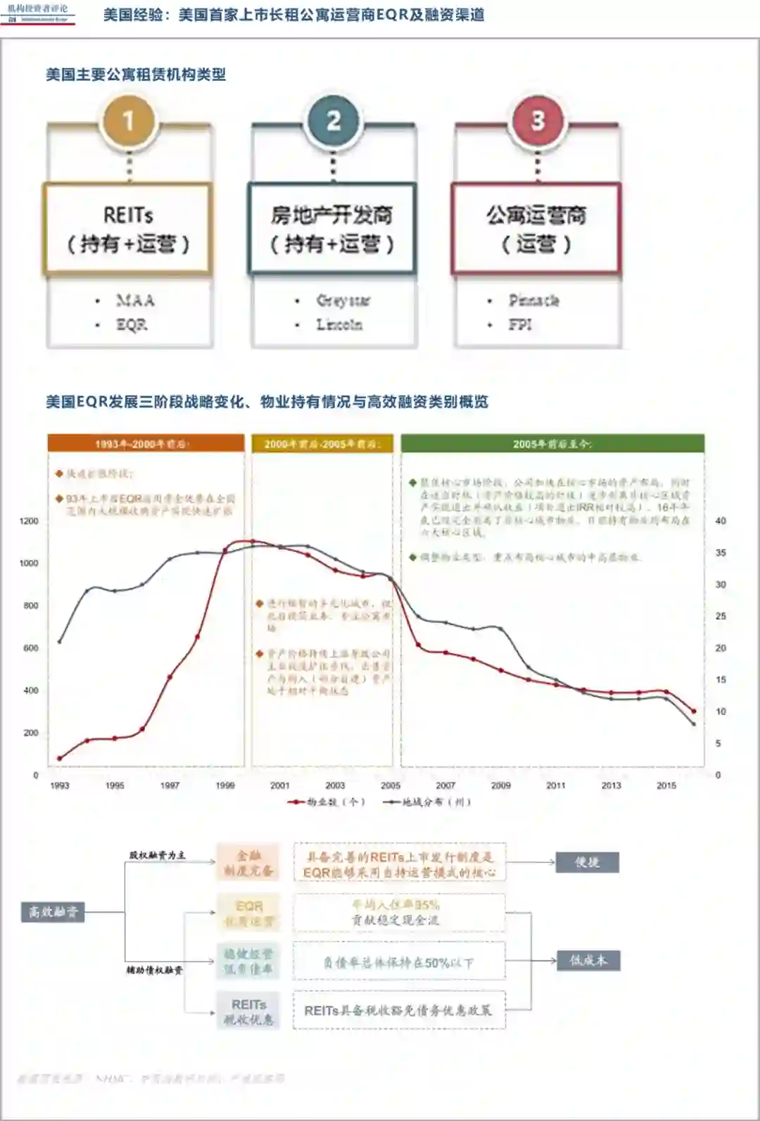 EQR公司成立于1969年,是一家总部位于美国芝加哥、专注经营和管理公寓的运营企业。1993年上市后规模快速扩张,5年间EQR共斥资 106 亿美元收购。1998 年已拥有 654 处物业、18万套公寓,2000 年规模进一步扩大到 1104 处物业、 23 万套公寓。