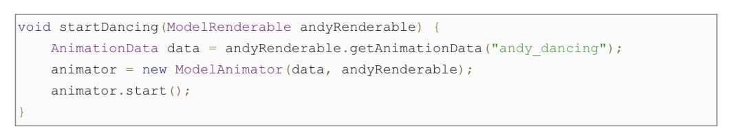 最新版本在 Sceneform 中,支持 3D 模型的动画,例如能够实现跳跃、跳舞、旋转等动作,让你的 3D 元素更生动,打造更有趣的体验。想立马试一试?只需要新建一个动画,使用 ModelRenderable 中的动画数据初始化 ModelAnimator(现有 Android 动画支持扩展)。