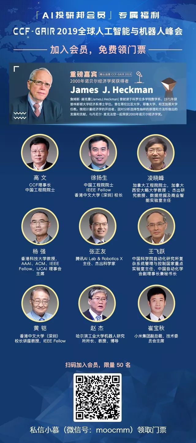 届时,诺贝尔奖得主JamesJ. Heckman、中外院士、世界顶会主席、知名Fellow,多位重磅嘉宾将亲自坐阵,一起探讨人工智能和机器人领域学、产、投等复杂的生存态势。