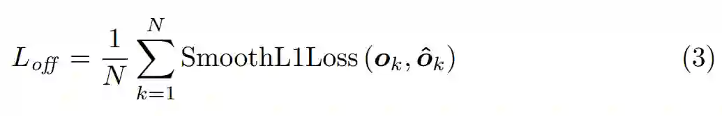 由于下采样,模型生成的热点图相比输入图像分辨率低。论文提出偏移的损失函数,用于微调corner和ground-truth偏移。