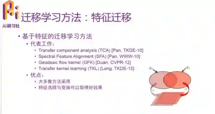假设是源域和目标域含有一些公共的交叉特征,方法是通过特征变换,将两个域的数据变换到同一特征空间,然后进行学习。