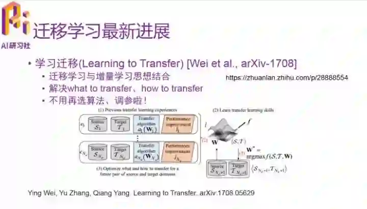 第三个是学习迁移。我的理解是把迁移学习和增量学习进行结合,作者提出从已有的知识里自动学习比较适合的算法和参数,这个很有前瞻性,也非常有意义。