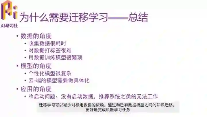 从数据、模型和应用这三个角度来说,迁移学习都很有必要。