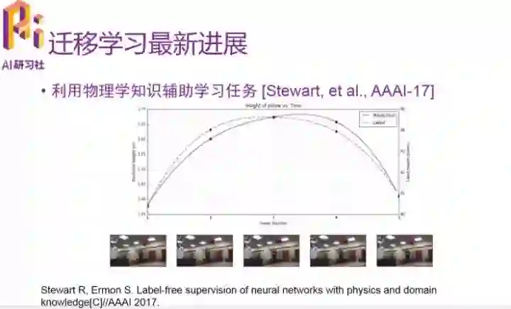 第二个比较新的进展是利用物理学知识辅助学习任务。实验效果是实线部分,作者的想法非常具有开创性。
