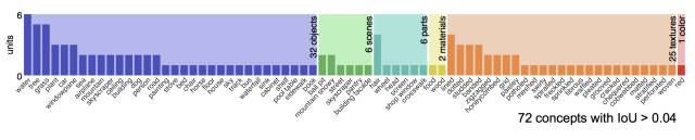 作者希望将每个卷积核单元(unit)与一些语义上的概念(concept)对应起来,从而使用这些对应关系以及不同concept对应的unit的分布情况来表征该网络的表达能力。