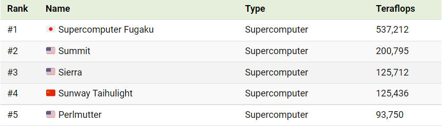 大国重器!全球顶级超算算力排行榜,top500中国占174台