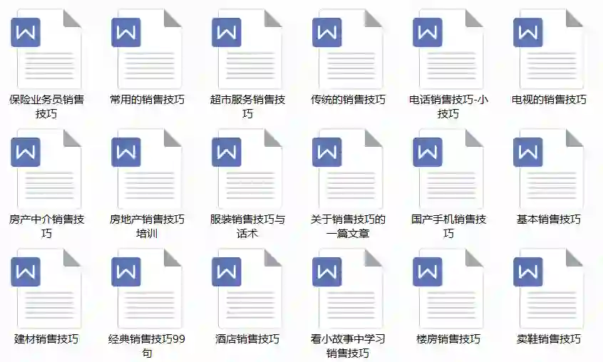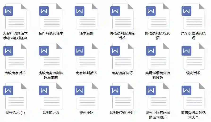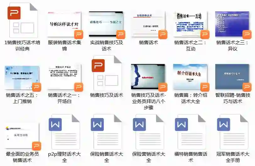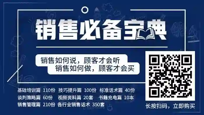 创业邦总结了一套销售必备文档,从销售基础、销售技巧、销售标准话术、销售谈判策略、销售充电书籍、销售管理、各行业销售话术等,所有关于销售必备技能应有尽有......