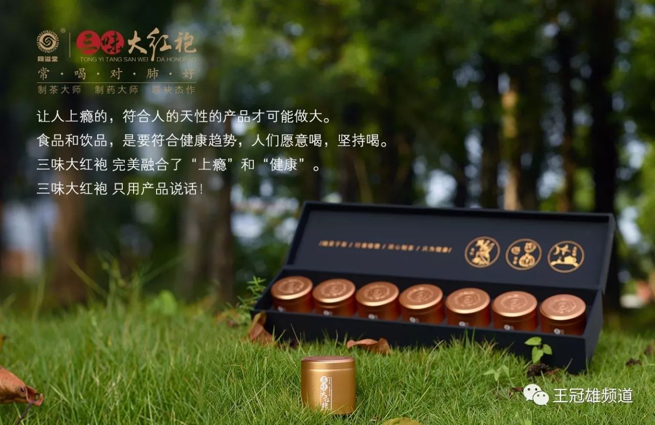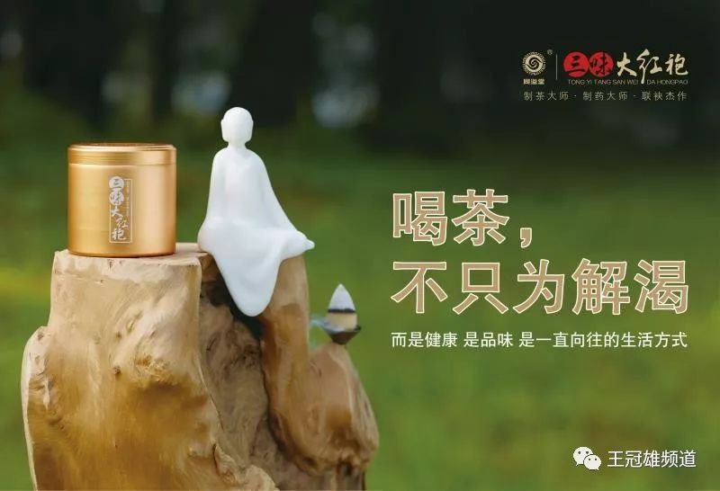 另一个值得一提的案例,是正在推向市场的另外一个保健茶品牌——三味大红袍。三味大红袍,是香港百年老字号同溢堂推出的一款罐装保健茶,由茶中状元之称的武夷大红袍与同溢堂祖传秘方“清肺白玉汤”融合而来。其制作工艺也综合了药和茶的精髓,由大红袍制作技艺大师虞建明、同溢堂第八代传人何国军,经过上百次调制,得以研发成功,是难得的保健珍品。