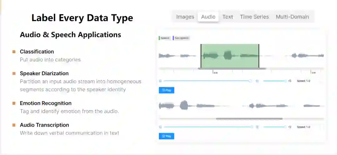 非常好用的数据标注平台,包括图像、音频、文本、时序各类格式的数据都可以标注。可以在playground里在线使用,也可以pip安装工具包。项目开源在github中。