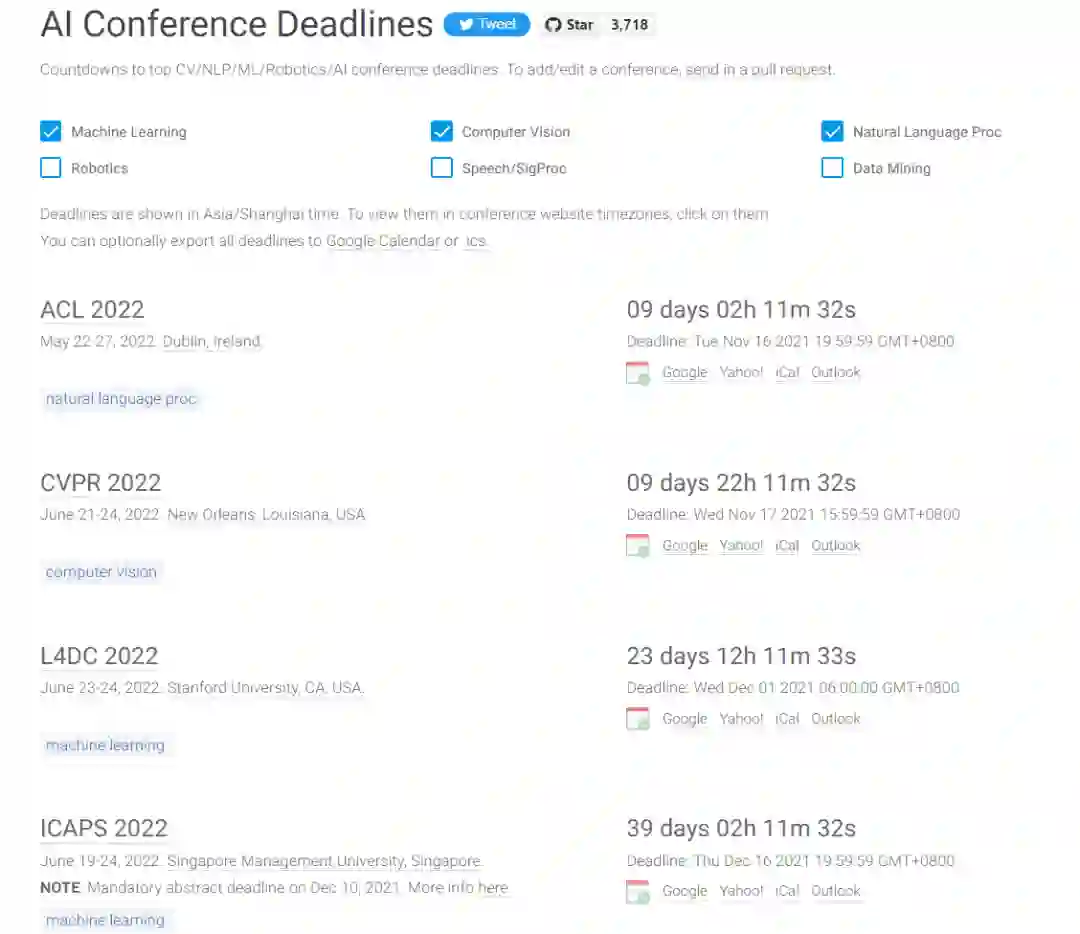 这里是 AI 顶会的 deadline 倒计时,非常全而且准。